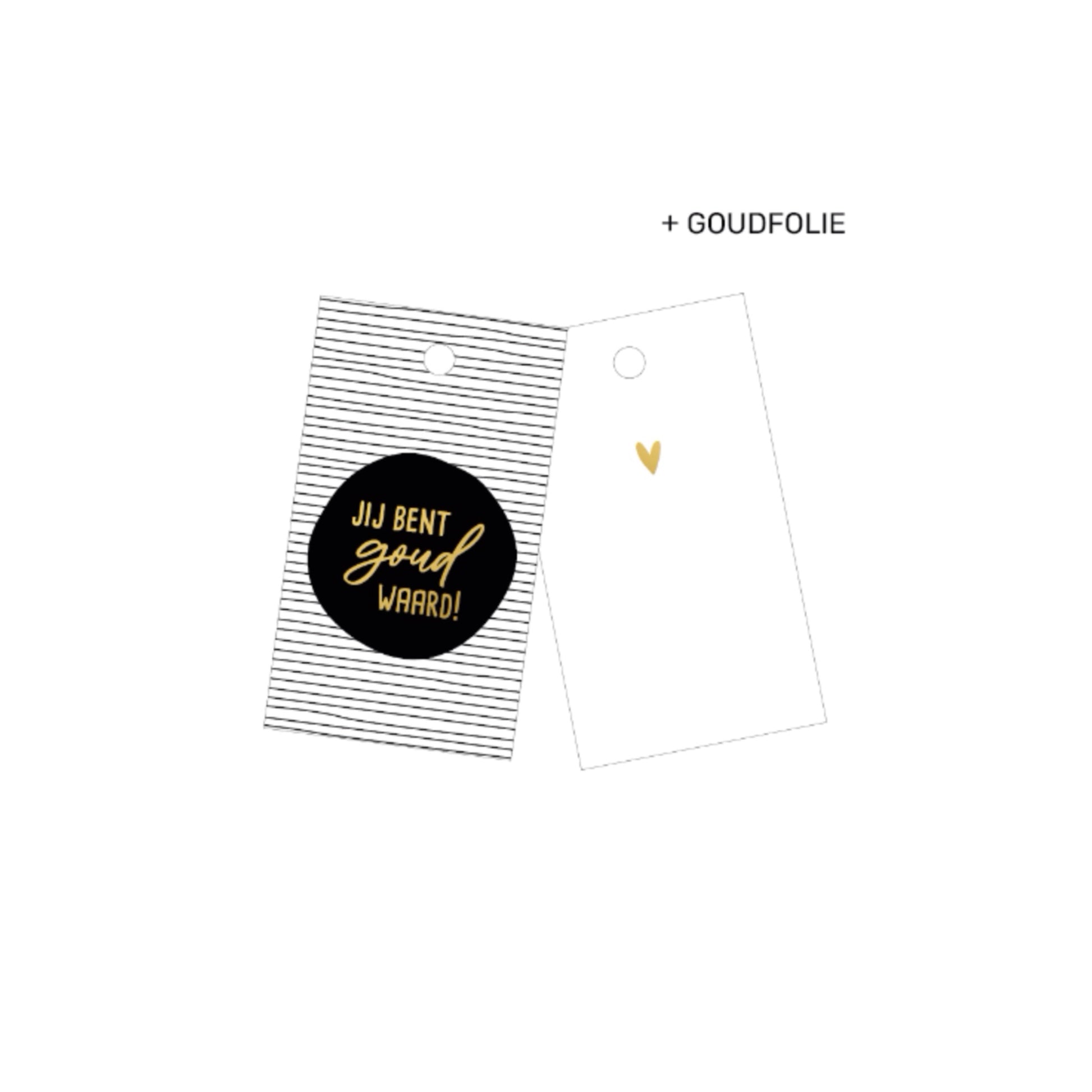 Cadeaulabel - jij bent goud waard - zwart/wit - 4x7 cm