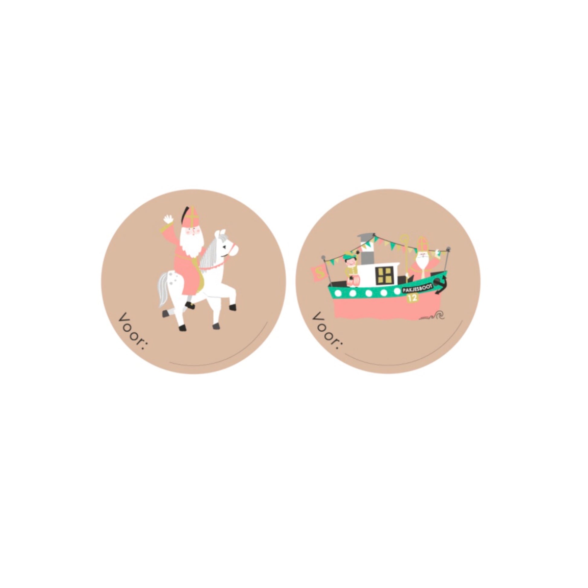 Cadeaustickers - sinterklaas - beige - 5,5 cm - 10 stuks