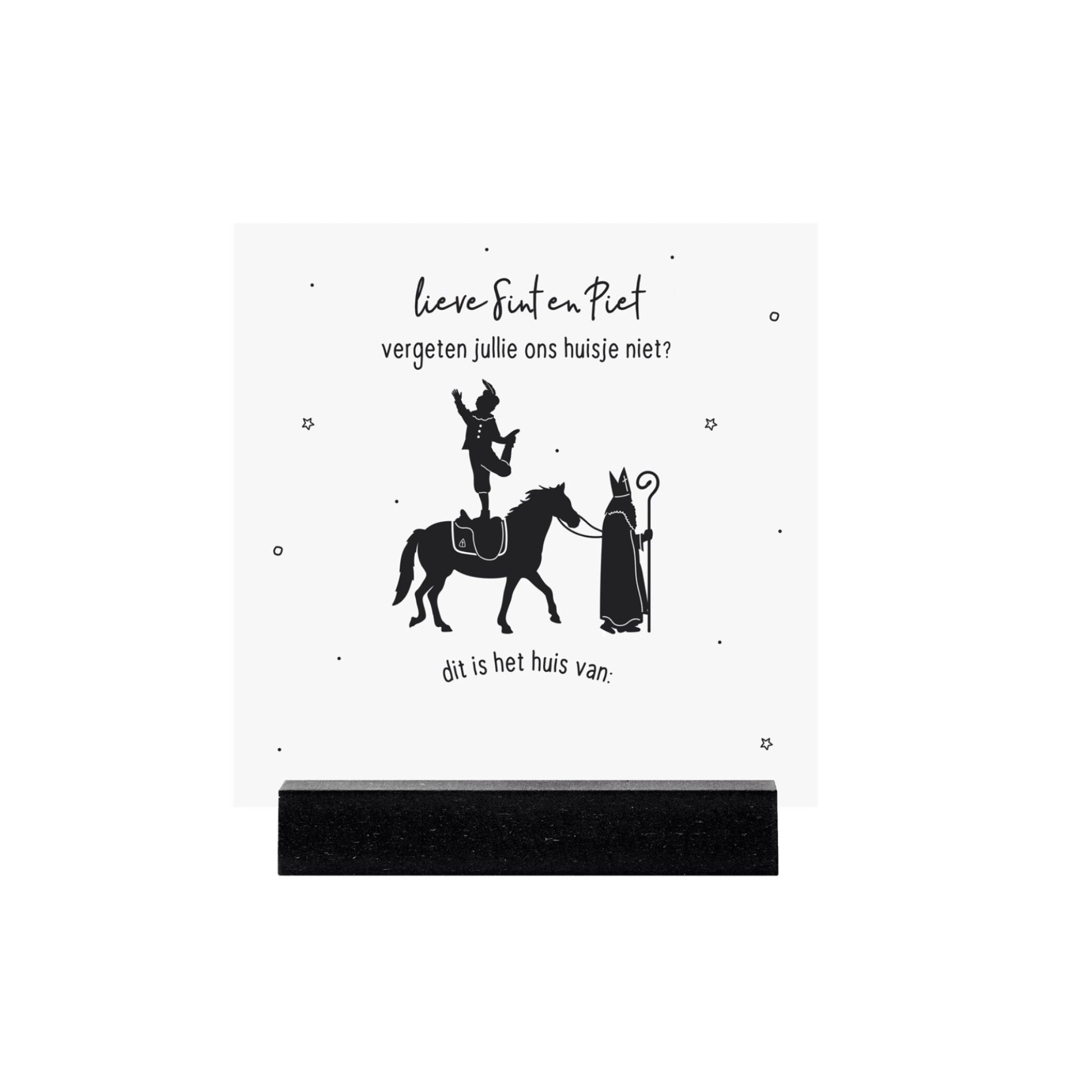Forex tegeltje - lieve sint en piet, vergeten jullie ons huisje niet - 16x16 cm - met houder