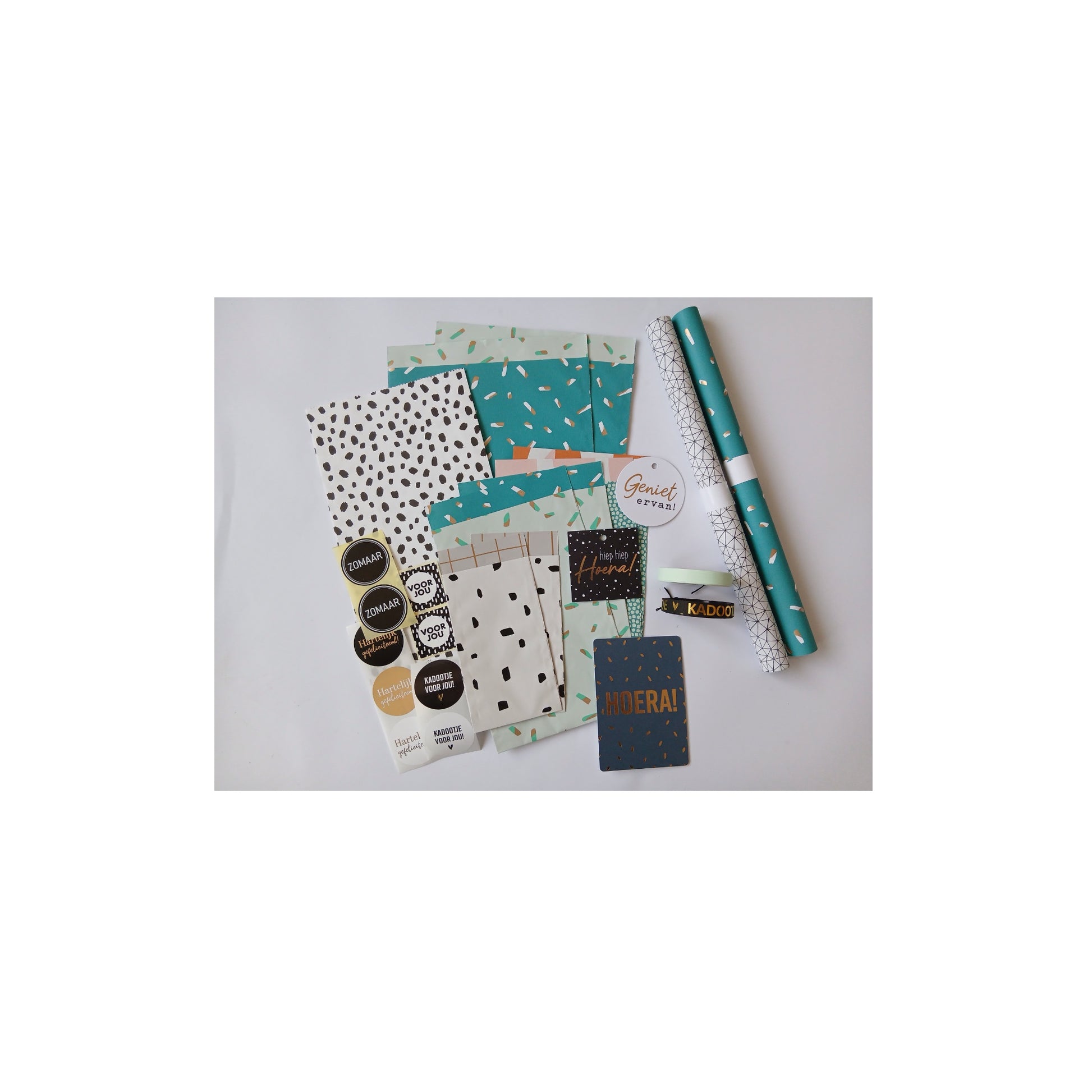 Met deze vrolijke inpakset heb je altijd een voorraadje inpakmaterialen in huis!