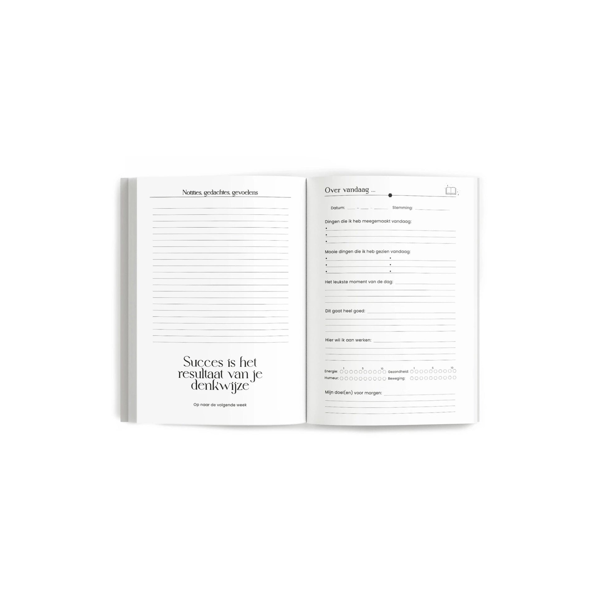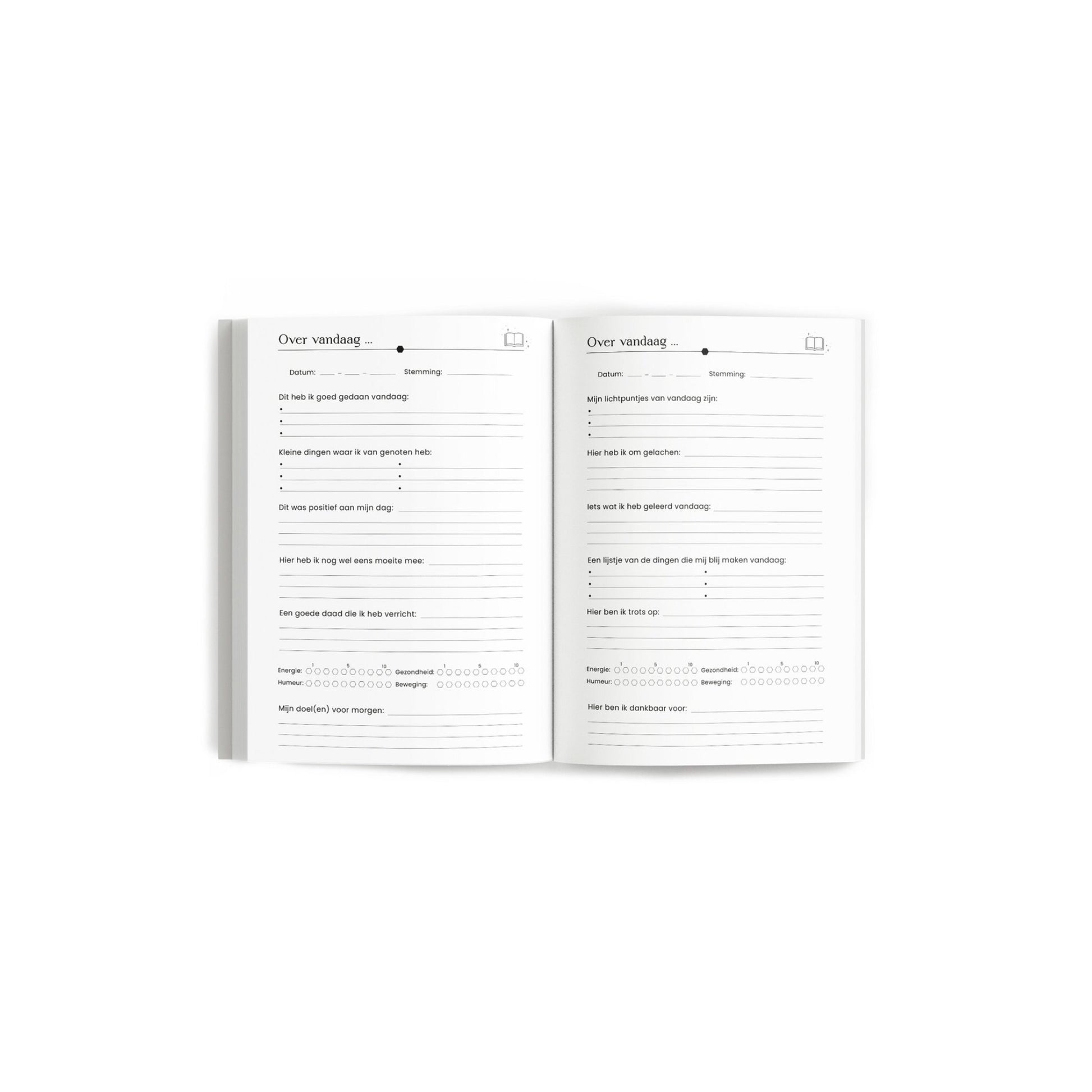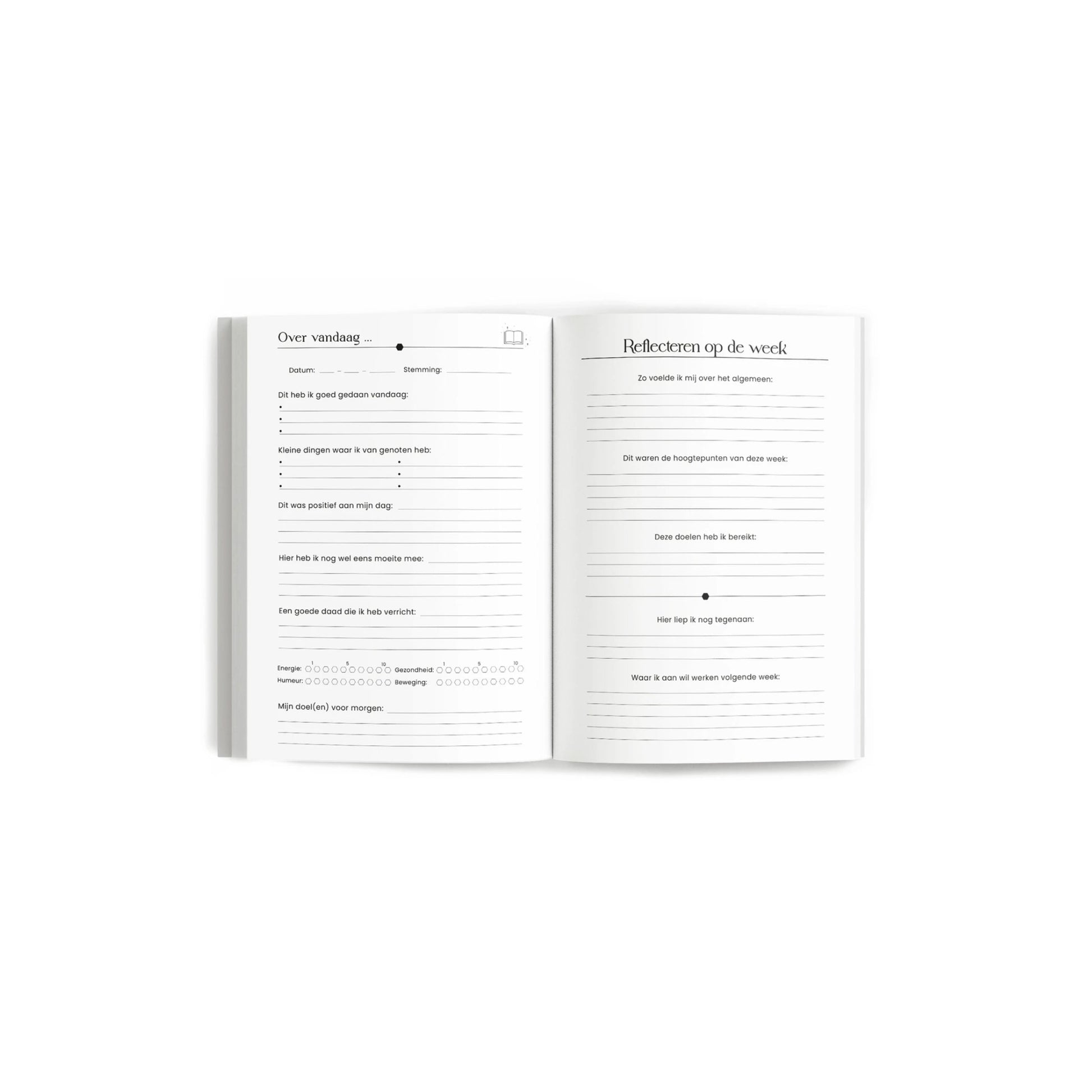 Het invulboek heeft plek voor 13 weken reflectie. Je kunt zelf de datums invullen, waardoor je op ieder moment kunt starten met het momenten dag boek.
