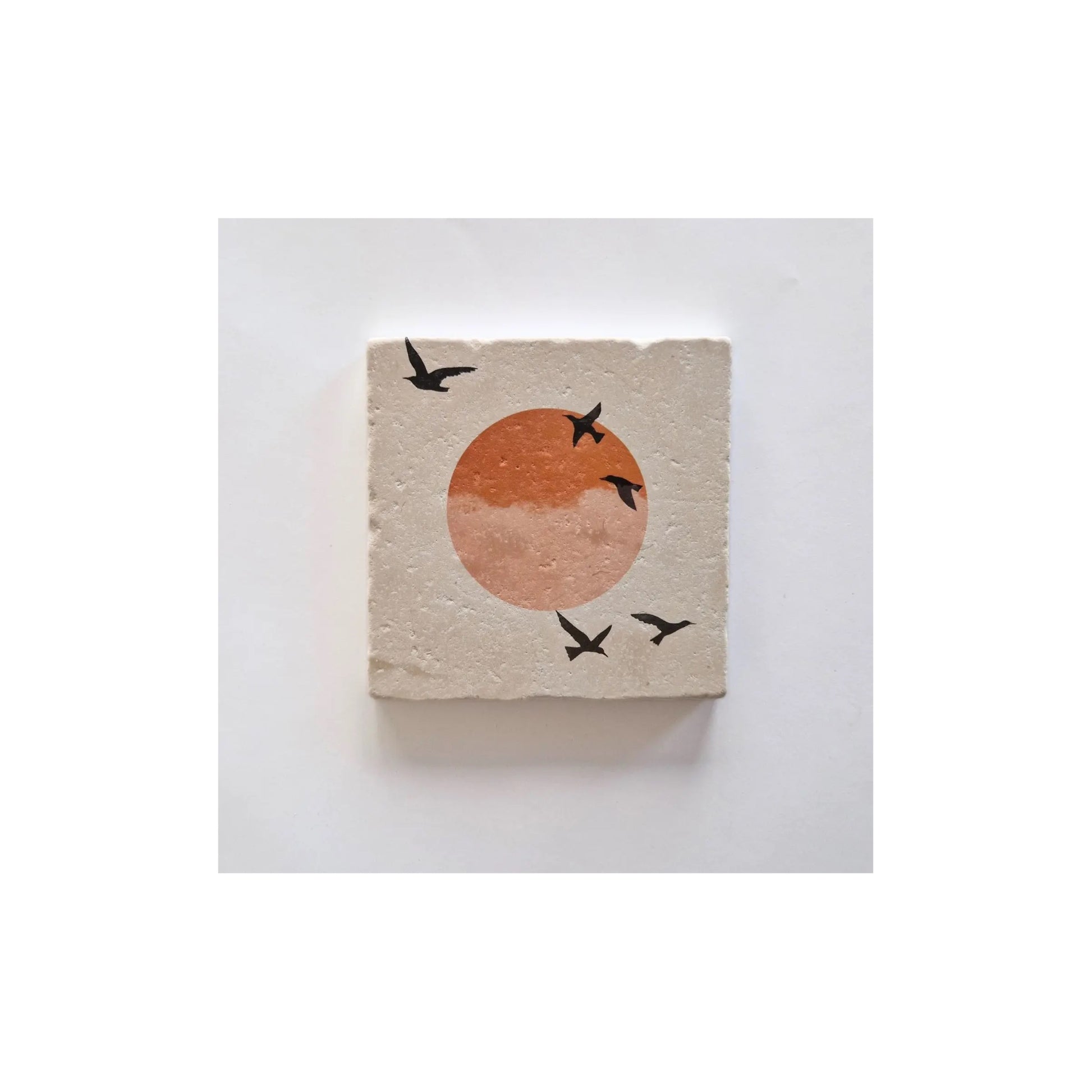 Natuursteen tegeltje - black birds - 10x10 cm - met houder