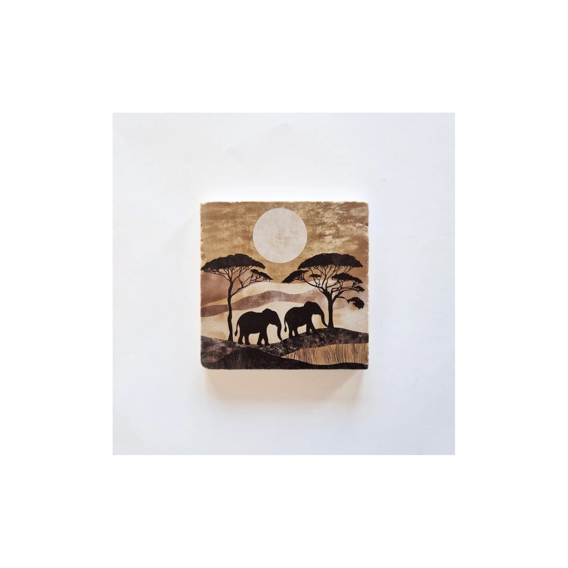 Natuursteen tegeltje - savannah - 10x10 cm - met houder